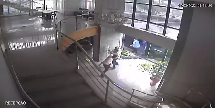 Imagens mostram o agressor dando socos e chutes no gestor do condomínio