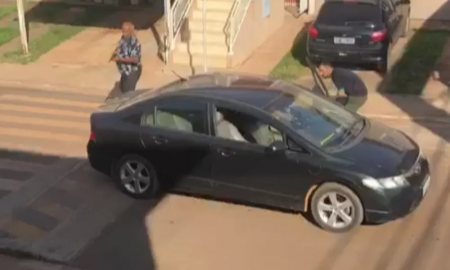 A Polícia Militar foi chamada em condomínio do Entorno do Distrito Federal Um pai e um filho que estavam armados foram presos...