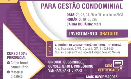 Aulas serão ministradas entre 22 e 29 de maio na Administração Regional do Guará. Estão abertas as inscrições para o Curso de...