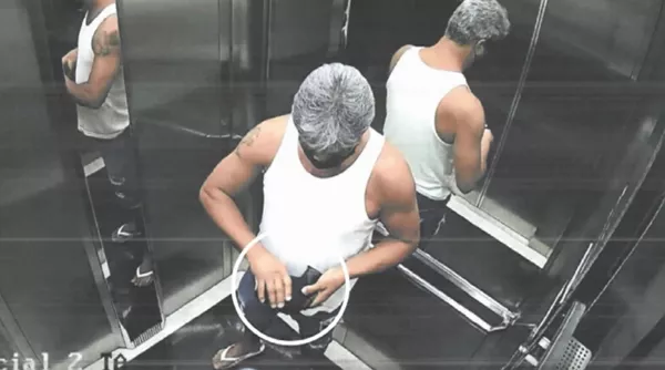 Imagens da câmeras de monitoramento mostram o homem portando e manuseando uma pistola nas áreas comuns do condomínio.