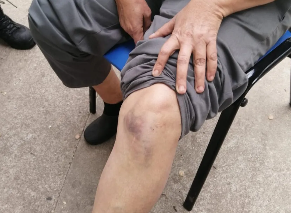 Faxineira machucou o joelho durante agressão em BH — Foto: Redes sociais/Reprodução