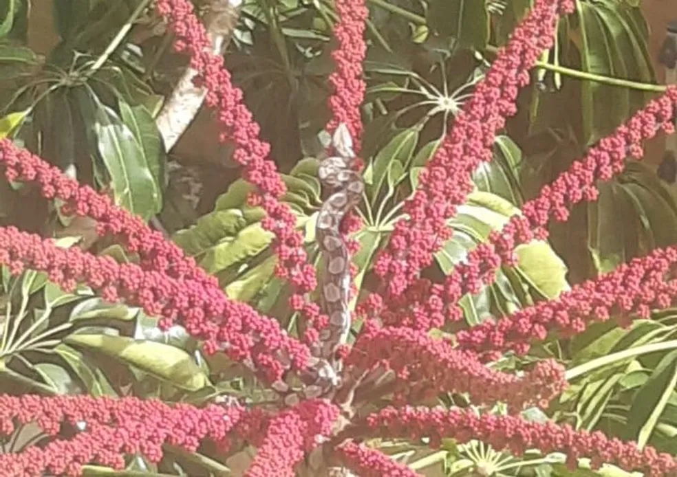 Uma cobra da espécie Jiboia foi encontrada no jardim de um condomínio, no Bairro Atalaia, Zona Sul de Aracaju, na manhã desta terça-feira (27).