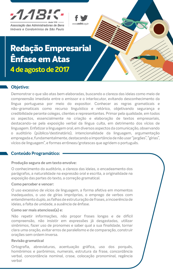 AABIC Redação Empresarial Ênfase em Atas, 4 de agosto de 2017 Por tudonanet Postado em 28 de junho de 2017 Compartilhar Tweet Compartilhar Compartilhar E-mail Comentários Redação Empresarial Ênfase em Atas, 4 de agosto de 2017 Postagens Relacionadas Compartilhar Tweet Compartilhar Compartilhar E-mail