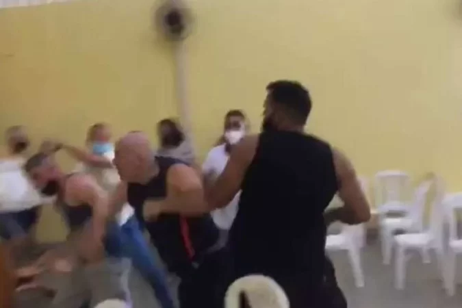 A briga generalizada então começou. Houve troca de socos e pontapés,cadeiradas e até ameaça de uso de arma de fogo.